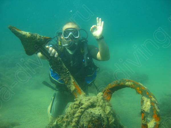 На дне уже находятся старинные якоря от турецких парусников, два мотоцикла времён Великой Отечественной войны. Необычные экспонаты дайверы собирали более пяти лет. Есть в экспозиции и рукотворные бетонные конструкции.